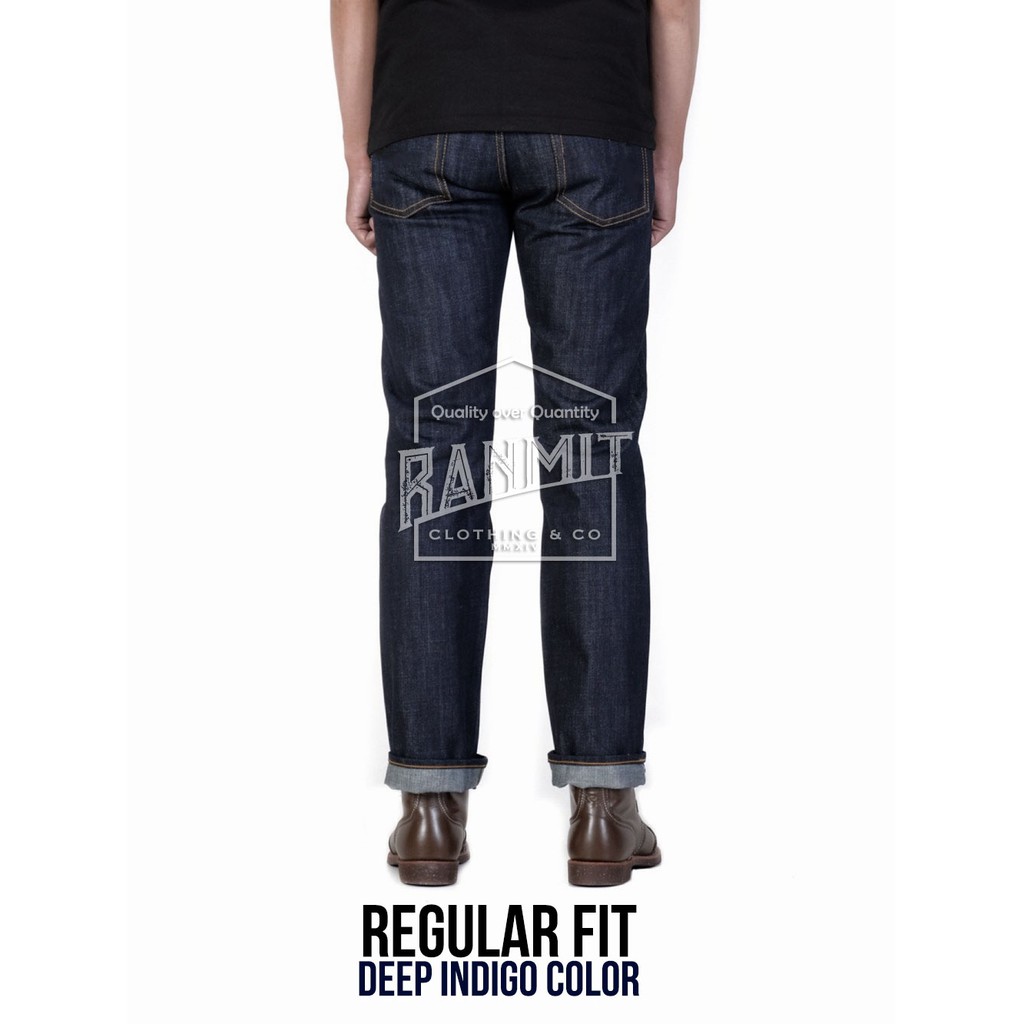 100 Selvedge Denim Deep Indigo Celana Jeans Pria Premium