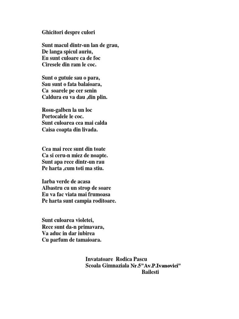 Ghicitori Despre Culori