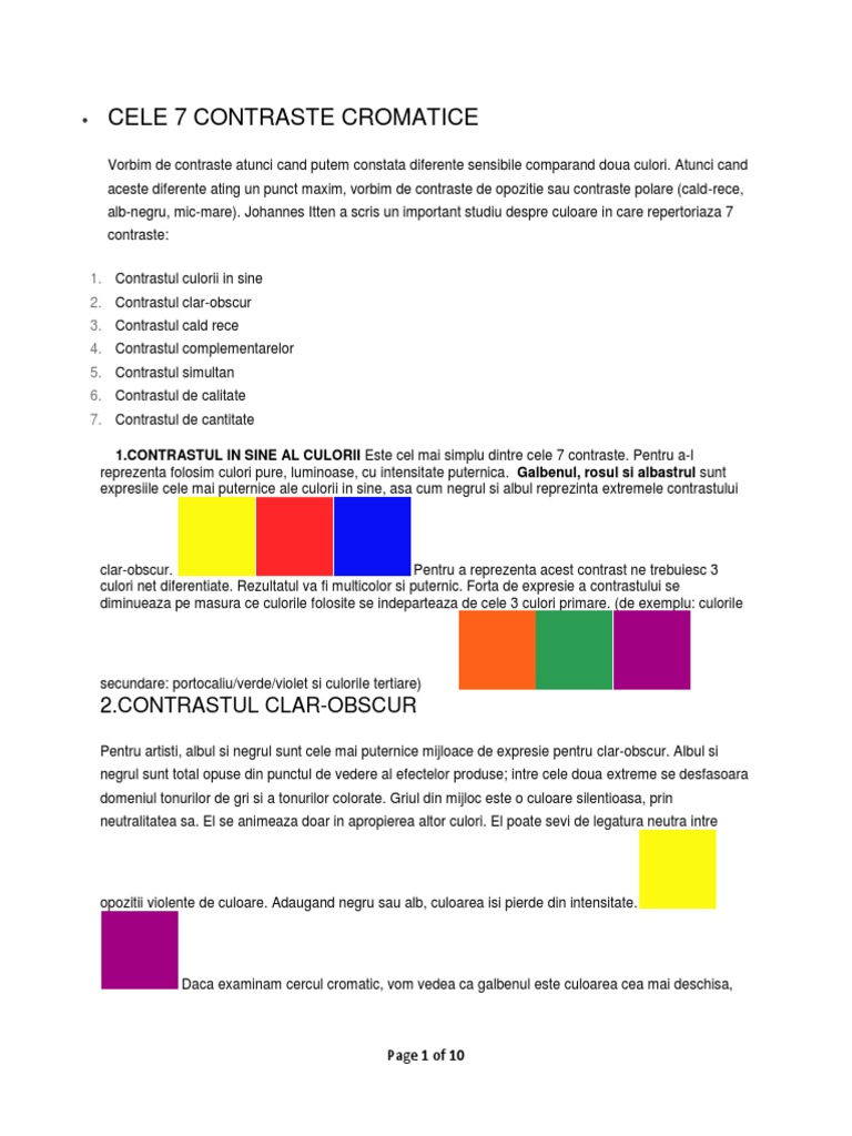 Curs 7 Contrastele Cromatice