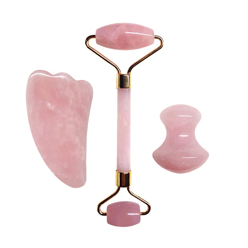 Import Rose Quartz Jade Roller Set Pink Crystal Face Massager